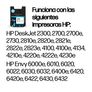 Los cartuchos de tinta HP 305 funcionan con: HP DeskJet 2300, 2700, 2700e, 2730, 2810e, 2820e, 2821e, 2822e, 2823e, 2825e, 2827e, 2842e, 4100, 4100e, 4134, 4210e, 4220e, 4222e, 4227e, 4230e HP Envy 6000e, 6010, 6020, 6022, 6030, 6032, 6400e, 6420, 6420e, 6422, 6430, 6432 |
