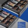 Incluye bandeja para dinero en efectivo